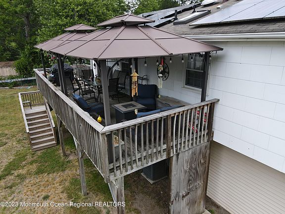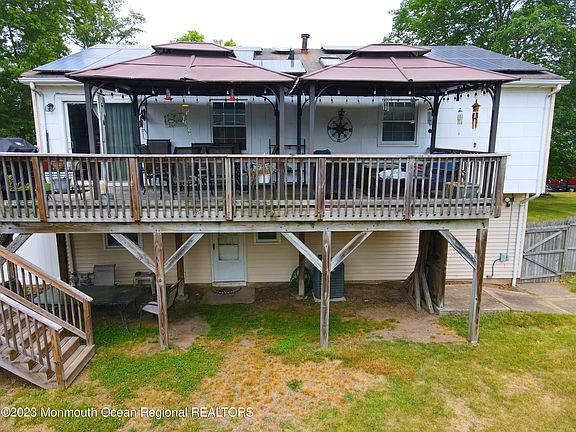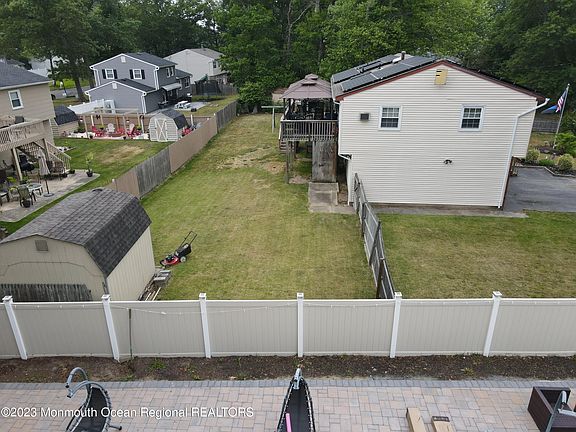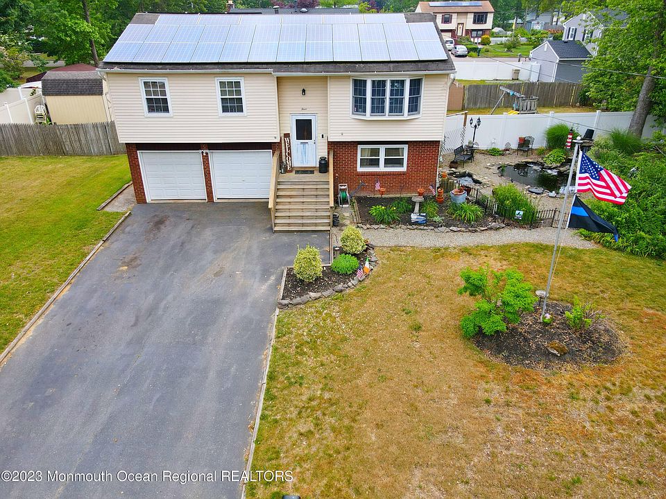 This Ocean county classic Bi-level home Has some great features. Large Zen garden with operational Koi pond. Huge under cover outside deck great for entertaining Weber grill included .Large water proof storage shed .Spacious Fenced in back yard . Solar panels with a newer 200 amp service. 2 car garage with work bench space for the hobbyist. Bedrooms on both level. This is great house in a great Neighborhood. Run don't walk this wonderful home won't last long !!