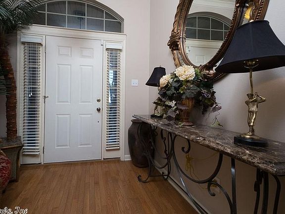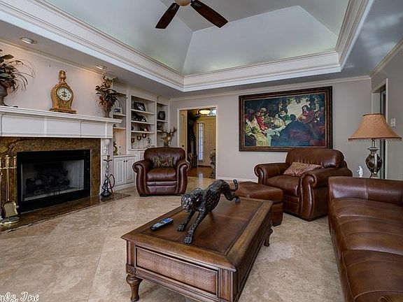 Extensive upgrades to this 1 level brick traditional. Wood floor in entry & travertine in all living areas. Great room features a lighted tray ceiling, fireplace, & French doors. Separate dining room plus casual dining in the spacious designer kitchen with granite counters, granite sink, stainless appliances, plus lots of windows and natural light. Huge master & master bath with marble counters, separate shower & jetted tub. Flat, fenced private back yard with stone patio. Roberts Elementary.