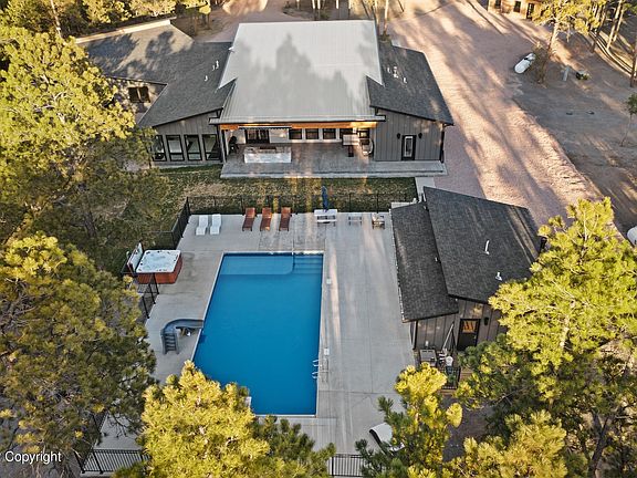 Serenity awaits you at this extraordinary home on the Ridge! 14+ acres! Boasting a spacious great room with soaring ceilings highlighted by a beautiful fireplace, glass wall and mass amounts of natural lighting. Beautiful kitchen with elegant features including 2 refrigerators, double bar tops and sinks, sleek cabinets and a formal dining room. The breakfast nook overlooks the peaceful pines and out door patio with a pool and tanning deck. Stunning master boasts a huge closet with access to the laundry room with double washer and dryers. Take a step outside and soak in the breath taking views, pool house includes kitchen, bedrooms, bathroom and sauna! Need a little more room for guests? Walk right over into the heated shop full of natural light and extra living quarters! From multiple