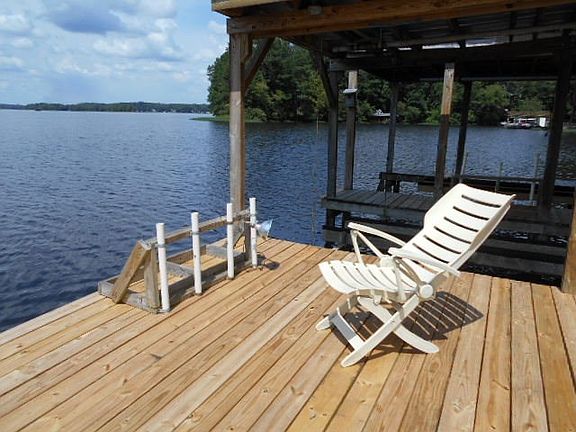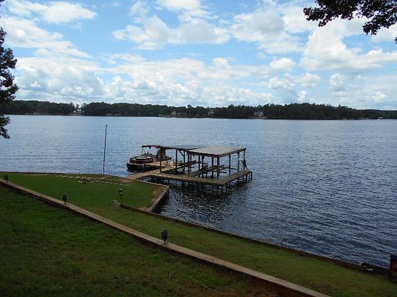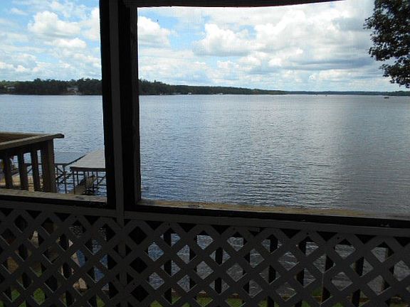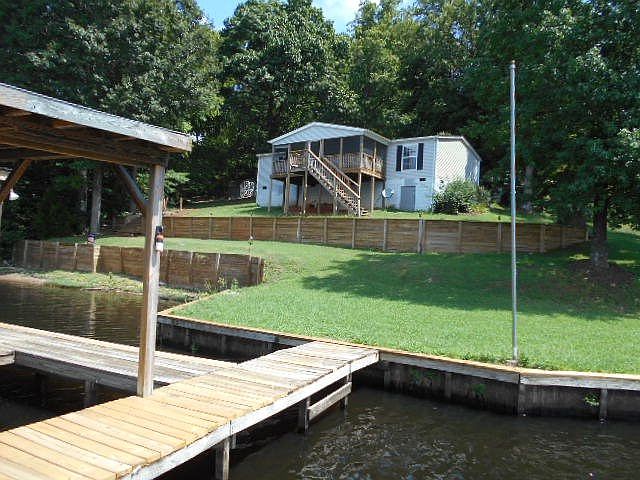 EXCEPTIONAL MAIN LAKE LOT with 188 feet of MAIN LAKE WATER FRONTAGE! The VIEWS are INCREDIBLE offering amazing SUNSETS VIEWS! The lot has a gradual slope and levels out at the bulkhead Lakefront ! Double boathouse with Sunning deck, fishing pier and great swimming water! The home is really just a bonus, it has been well cared for and offers 3 bedrooms, 2 baths, living room, open kitchen, dining area, and a screened porch over looking the lake. The home has fresh paint and updated fixtures. The location is fairly private and could accommodate a larger home. Enjoy the Lake NOW...Build later!