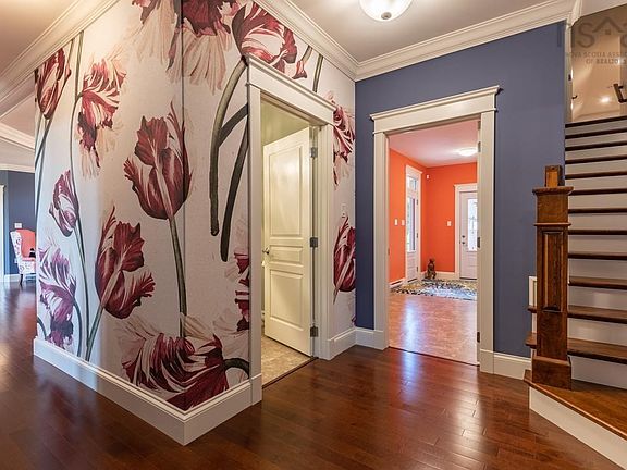 Perched on a summit overlooking the Annapolis Valley and Minas Basin on the Bay of Fundy, this custom built three bedroom bungalow on 9.5 private acres was thoughtfully designed with a casual open layout and an abundance of windows that capture panoramic views from almost every room in the home. The main living room is defined by a handsome coffered ceiling and features floor to ceiling garden doors that open up to a covered stone patio with access to the beautifully landscaped gardens, saltwater pool and pool house. The east wing of the home features the primary bedroom with a spa-like ensuite and dressing room with built-in cabinetry. Two additional bedrooms on the west wing each have their own ensuite bathrooms, providing private and comfortable accommodations for hosting family and friends. A generously sized mudroom and laundry provides access to the finished attached garage with a built-in recycling centre. The bright and spacious detached garage/workshop is a craftsman's dream, heated and finished with a wall of built-in cabinetry for tool storage and a custom work island on wheels. The property is conveniently located close to all major amenities. The university town of Wolfville, surrounded by vineyards and enjoyed for its many wineries, fine dining, cafes and boutique shops is just 10 minutes down the road, with Halifax and the Stanfield International airport a one hour drive away. 2022-09-07