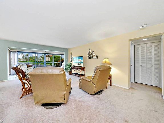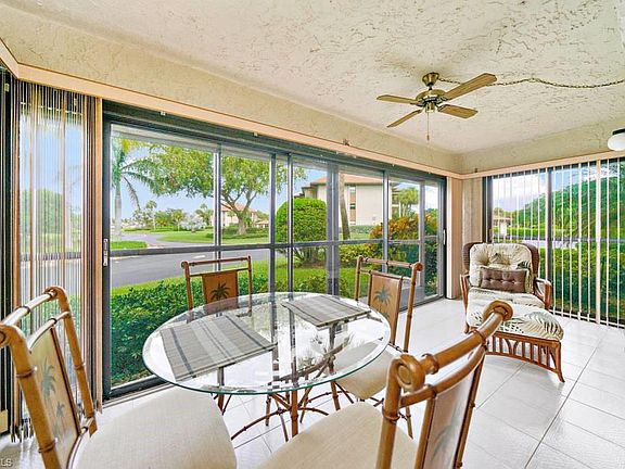 Comfortable, move-in ready and TURNKEY FURNISHED with an updated kitchen and master bath, this spacious condo is your perfect winter home! This first floor unit has a dedicated carport space and offers more living area than other condos in this price range. Open floorplan with split bedrooms are a timeless design. This remodeled kitchen has expansive granite counters, newer cabinets, stone backsplashes, stainless appliances, loads of storage, attractive lighting fixtures and island for entertaining. Fully glass-enclosed lanai with sliders that open to screens for cool breezes. It adds an extra 128sf of living space! Walk right out the back door without taking the stairs or elevator. MOTORIZED HURRICANE SHUTTERS over EVERY window that operate at the push of a button. Master bedroom was redesigned with large walk-in closet and adjacent bath was remodeled with a walk-in corner shower and 2 vanities. Why buy a home when you can enjoy this much space and convenience without maintenance? Monthly fees include building insurance, flood insurance, heated community pool and large clubhouse, water and sewer and high-speed internet and HD cable! BE SURE TO WATCH THE 3D VIRTUAL TOUR!