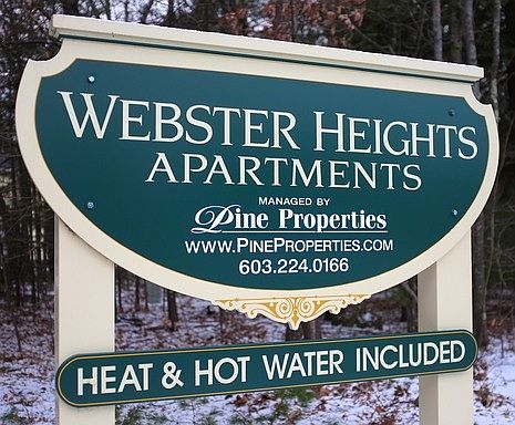 Webster Heights - Free Heat & Hot Water - A Beautiful Place to LiveSitting among the wooded beauty of Franklin, NH, residents can take advantage of all that the White Mountains and Lakes Region have to offer, while convenient to Concord and the surrounding communities. Webster Heights offers residents 4 different modern and spacious floor plans with heat and hot water provided for free. Additional amenities include air conditioning, wall-to-wall carpeting, secure building, laundry facilities, picnic area, wooded lot, private balconies, and abundant parking.Visit us at www.PineProperties.com for more information or to apply online. Complete an online application to set up a private viewing. The application is short, free and secure.www.PineProperties.com