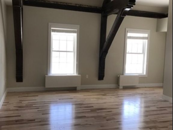 Beautifully renovated historic church housing 25 unique apartments. This unit is 740 sq. ft. Large loft with 1 bathroom. High ceilings, loft space for storage and stunning wood beams throughout the unit. Beautiful hardwood flooring. European washer/dryer combo in the unit.These units are all updated with new kitchens, bathrooms, electrical, plumbing, heating and have a full building sprinkler and fire protection system. Heat, hot water, off street parking and trash/recycling included. Community garden on site, bike storage and bus line hut right on the property!