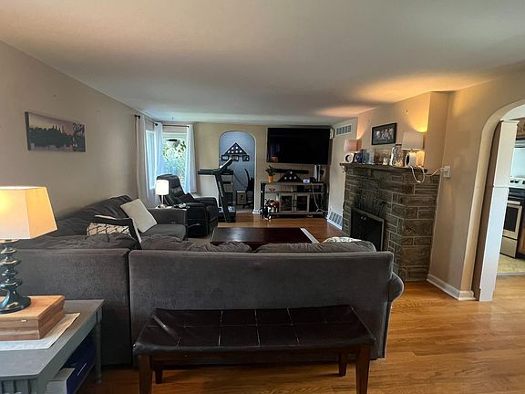 - Fireplace features: Stone, Mantel(s), Wood Burning
