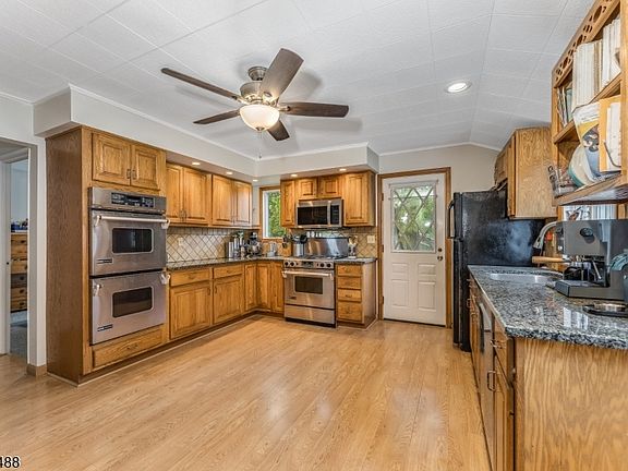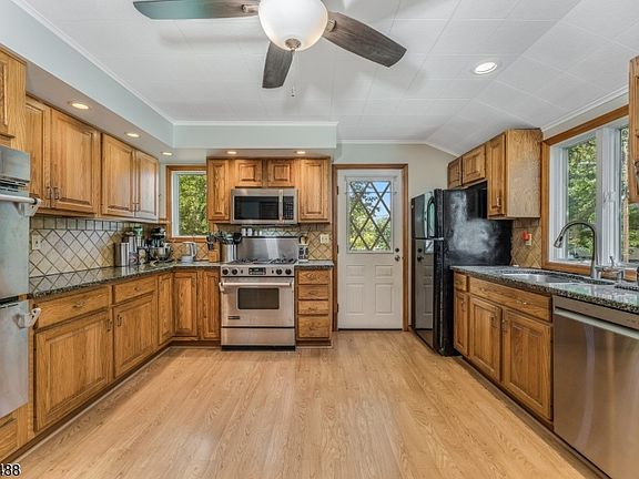 Welcome to 3 Pohatcong Terrace! This three-bedroom, two-bathroom ranch is in a great neighborhood location -- walk to Warren Hills High School and ride bikes on level roads! Beautiful gourmet kitchen with stainless steel appliances -- a gas JennAir downdraft convection oven with convertible grill cooktop, plus double wall ovens, granite countertops, Kraftmaid cabinetry, a brand new stainless steel dishwasher and oversized pantry. Both bathrooms updated, one with walk-in shower and other with an extra deep tub and customizable oversized linen closet, both with new rainhead showers and hand-held sprayers. Great sunroom with new LVP flooring and separate entrance, and a partially-finished walk-out basement that adds versatile space. Hardwood flooring (including under carpet in Dining Room and bedrooms), freshly painted, new ceiling fans; Leaf Filter gutter guards and new back windows, both warrantied. Oversized two-car garage, in addition to a carport, warrantied french drain system; expansive, freshly sealed and waterproofed back deck with motorized retractable Sunsetter awning, 24' above-ground pool with center drain (no vacuuming!) and trex deck overlooking the beautiful tree-lined backyard with mountain views. (Pool being sold as-is, no known issues.)