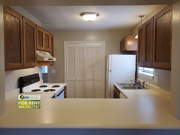 This charming townhome features 2 bedrooms and 1.5 bathrooms, perfect for those looking for a cozy space to call home. Enjoy the convenience of included yard maintenance and off-street parking. This home comes equipped with a stove, refrigerator, and dishwasher, making meal prep a breeze. Relax and unwind on the patio or covered porch, ideal for enjoying the beautiful surroundings. With additional storage space, you'll have plenty of room for all your belongings. Don't miss out on this opportunity to live in a great location in Greenville! Conveniently situated to access both Mauldin Rd and Laurens Rd, this location facilitates easy access to I-85 and multiple routes to locations around Greenville Easy access to I-385, I-26, and I-85. 2.1 miles to Proterra, Inc. 2.3 miles to Carmax 3.3 miles to Greenville Technical College 5.6 miles to Haywood Mall 6.1 miles to Patewood Medical Center 9.3 miles to Cherrydale Shopping Center 14.9 miles to BMW CAVALIER WOODS subdivision Duke Energy Greenville Water Piedmont Natural Gas City of Greenville Sewer District City of Greenville Garbage and Recycling 12 months. Deposit Required. Listed deposit is minimum & may increase due to risk factors. Smoke Free Property. Pets conditional. Application fees, background, credit checks apply. Renters insurance required. Call for viewing.