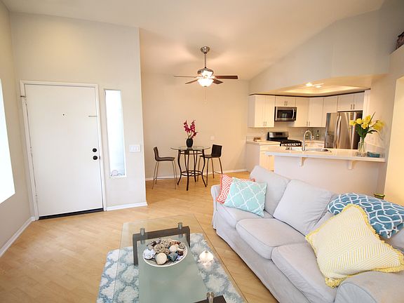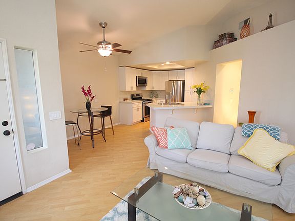 Beautiful newly remodeled condo for sale in the highly sought after community of Bella Venata. This home features 2 bedrooms and 2 bathrooms in a welcoming floor plan with a clean modern design. The kitchen features white quartz countertops, sleek white cabinetry, and stainless steel appliances. Vaulted ceilings and large windows allow an abundance of natural light and give an open spacious feel to the home. Unique corner unit has 2 private balconies that wrap around the home allowing access from the living room and both bedrooms. The home has fresh paint throughout, brand new carpet was installed in both bedrooms, and both bathrooms have been upgraded with new modern fixtures. Unit comes complete with a 1 car garage. Community amenities include swimming pools and spas, a community park with basketball courts, tennis courts, and BBQ and picnic areas. Don't miss your chance own a great home in a great well-maintained community-oriented neighborhood!