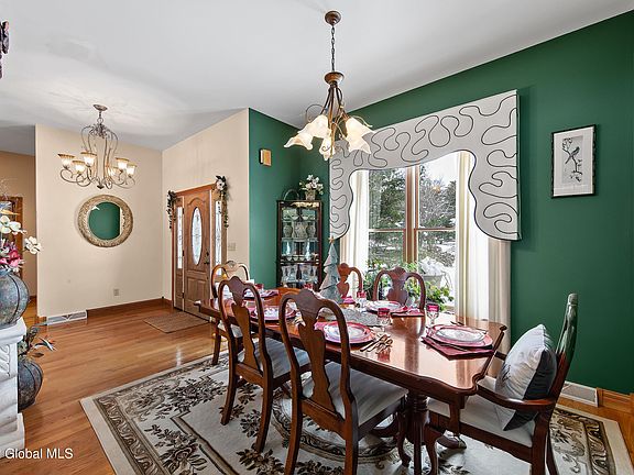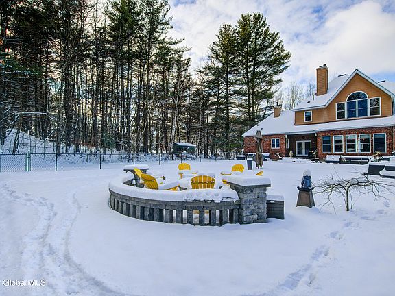 Rare opportunity to own over 3 privately situated acres in one of East Greenbush's most desired neighborhoods. This 4 bedroom, 5 bath solid brick custom colonial boasts soaring ceilings, hardwoods, walk in closets, a finished basement for all ages to gather and play, workshop, storage, and much more. Large first floor master suite includes gas fireplace and French door walk out for private access to yard and hot tub area. Master bath w/ large jetted tub, private commode and oversized walk in closet. Enjoy beautifully landscaped backyard with concrete pavers, heated in-ground pool, built in grill and firepit. Enjoy being minutes to I-90, Regeneron, dwntwn Albany, shopping, dining & conveniences