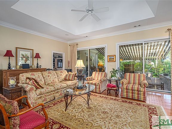 Live in Oakridge on a beautiful street with custom built homes near the Oakridge Clubhouse, Fitness Center and Main Gate. Located on hole #2 of The Oakridge Golf Course. This 4-bedroom, 4.5 baths split floor plan stucco home comes with 2 bonus rooms, dining room, living room, family room, screened porch and brick paver patio with covered veranda. Wood floors on the entire lower level, extensive molding, built-ins, cove & vaulted ceilings, plantation shutters, & bar area. With eleven-foot ceilings this expansive home is truly distinctive. On the first floor is the Living Room, Family Room, Kitchen open to the Family Room, Dining Room, Primary Bedroom with large closet and the split floor plan with 3 bedrooms on the opposite side of the house. Two bedrooms share a jack and jill bath. Two Bonus Room one with a fill bath. Brick paver driveway along with a three-car garage.