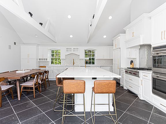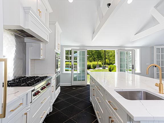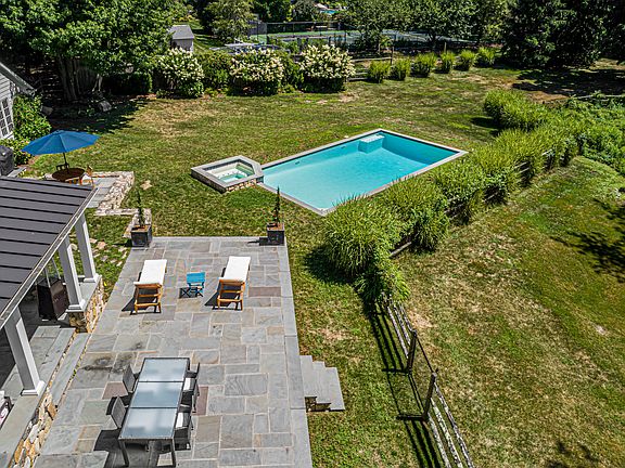 Luxury living awaits! This stunning, newly renovated home sits on just under two acres of flat land in one of Westport's most beloved cul-de-sacs. An entertainer's dream, this 5600 sq ft charmer features a newly renovated gourmet kitchen with chef-grade appliances and radiant heated floors. French doors connect the kitchen with an expansive outdoor entertaining area. The beautifully landscaped, private backyard is the perfect place to enjoy every day or host guests. It features a large blue stone patio, a covered seating area, and a stunning gunite pool and spa. Off the kitchen, you'll find the perfect flex space great for a home office or small den that connects to the 2-car garage. The spacious living room offers lots of natural light with a wood-burning fireplace for those cold winter nights. The dining room is perfect for hosting dinner parties, large or small. On the other side of the first floor, you'll find two large bedrooms with a shared full bath. The fully renovated primary suite is a calming oasis with a walk-in closet, a beautiful ensuite with a double rain shower, and French doors that open to a lovely deck, perfect for enjoying a morning coffee. The second floor also includes two large bedrooms and an additional full bath. The 3rd floor is a perfect getaway space, with a bedroom and full bathroom. The finished lower level has a rec room w/fireplace, full bath & laundry room. This home truly has it all!