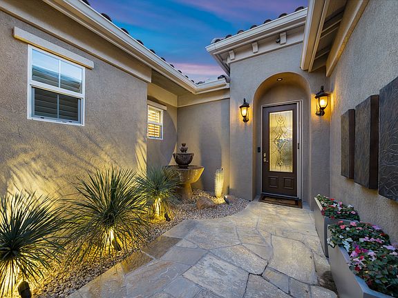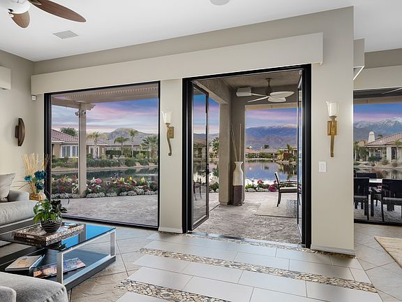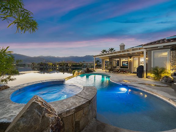 Discover breathtaking South mountain views in Rancho Mirage with this stunning SOLAR powered LAKEFRONT home in the gated Mission Shores community. This exquisitely upgraded, solar-powered residence offers 4 bedrooms, including a private casita, and 4 full baths. Featuring 28 owned solar panels, floor-to-ceiling windows, and commercial-grade double doors that capture expansive lake and mountain views, this home seamlessly blends luxury and efficiency. Enjoy a saltwater infinity pool with color-changing LED lights, new LED lighting throughout, designer fixtures in all bathrooms, and custom drapes and blinds with electric controls in the master bedroom, great room, and dining area. The backyard is a true oasis with a rock waterfall, professionally built shed, motorized retractable outdoor awnings, and stunning, unobstructed southwestern views. Recent upgrades include a new garage door, Lennox air conditioning units in both the main house and casita, and new toilets. The HOA includes a Social & Fitness membership to the prestigious Mission Hills Country Club, offering fine dining and various activities. This meticulously maintained home is ready to impress schedule your viewing today! Landlord pays for Gardner and Pool maintenance. Tenant pays all utilities.