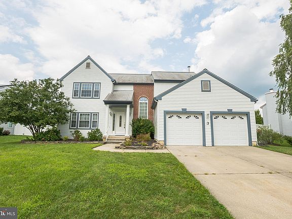Welcome home to 3 Quaker Street, located in the heart of Marlton! Drop your bags and move right into this fantastic 3 bedroom, 2.5 bath home...it's all been done for you! Exceptional curb appeal with its maintenance free exterior with brick accent and decorative columns. Inside you will find a 2-story foyer and ceramic tile flooring. The open concept floor plan includes a sunken family room with plank wood flooring , built in shelving, recessed lighting and French door access to a screened patio area, featuring stone accent walls, ceiling fan and access to your fully fenced back yard. The large dining room opens to the spacious kitchen and breakfast area. The kitchen has been updated to include new stainless steel appliances, granite counter tops, glass tile backsplash, new flooring and white cabinetry. The adjacent living room features vaulted ceiling, skylights, window seating and a gas fireplace with brick surround. A wonderful focal point in this room! An updated half bath completes the main level. Upstairs you will find 3 spacious bedrooms, including a master suite with vaulted ceiling, walk in closet and a BRAND NEW, 20k bathroom renovation. This en suite bathroom features double bowl sinks with upgraded vanity, a large soaking tub, ceramic title flooring, recessed lighting and new fixtures. The gorgeous, walk in shower has coordinating ceramic and glass tile, a rain shower and a frameless glass enclosure. Two additional bedrooms, along with an updated hall bathroom and second floor laundry complete the upper level. Other updates include; vinyl energy efficient windows, newer hot water heater, new concrete patio, new vinyl fencing, roof (2005), carpet (2018), insulated 2 car garage with steel garage doors and 10' ceiling. Great location for the commuter, near all major highways, shopping areas & restaurants. Highly rated Evesham Twp Schools and just a short drive to Philadelphia and the shore points. Schedule your tour today, this is just what you've been looking for!