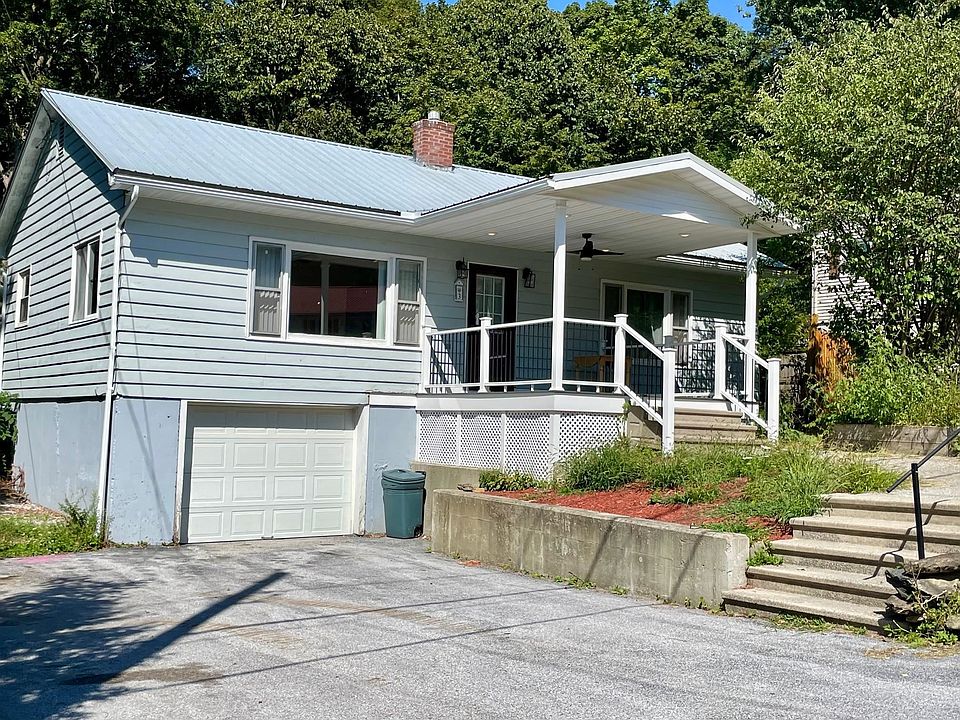 Tucked away on a quiet, dead-end street in the hill section of St. Albans and within walking distance to all downtown amenities. Enjoy the ease of single level living with a bright eat-in kitchen and a spacious living room with hardwood floors throughout. 3 bedrooms and full bath complete the main level. A partially finished basement provides extra space for a family or recreation room and half bath, and conveniently walks out into the signle car garage. Sit on the covered front porch enjoy your morning coffee or relax on the rear deck, listening to the birds while overlooking your private back yard and garden space. Located just steps to Aldis Hill Hiking and Mountain biking Trails and Hard'ack recreation area offering skiing, sledding, swimming, recreation fields, dog park and the beautiful indoor/outdoor St. Albans community pool. All of this, and just minutes to shopping amenities, grocery and convenience stores, Hospital and Medical offices, Schools, Local Parks, and I-89 for easy commuting!
