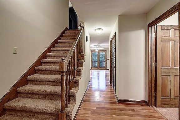 Charming, warm, spacious and inviting describes this great TOWNE ACRES home! The main level features a huge family room with fireplace, along with formal living and dining rooms. The large kitchen has a breakfast nook that flows out onto a great multi-level composite deck with copper roofed gazebo that looks out over beautiful woods. There is a bedroom, that would make a great office and a full bath, complete with steam shower on the main level. Upstairs is a huge master suite with walk in closet, two additional bedrooms and full bath along with the convenience of the laundry room on this level. The basement makes a great 'hang out' space for guests or hobbies and there's a fireplace, too. Pool table is negotiable. Two car garage has room enough for a workshop. Lots of places for parking and a huge lot at the end of the cul de sac. Super LOW MAINTENANCE with hardy plank and brick exterior, fresh paint and NEW carpet, and NEWER doors and windows including the NEW garage doors! Measurements are taken from courthouse records and other sources, if exact measurements are important, please measure.