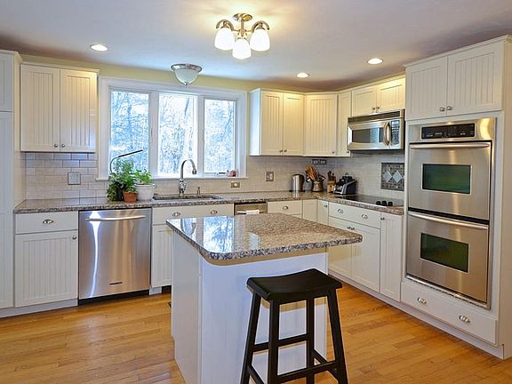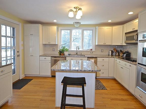 An exceptional 3/4 bedroom Colonial is awaiting your inspection! Sitting stately on a 1.69 acre cleared lot, this home offers everything you would want for the growing family. The stunning kitchen exhibits stainless appliances, granite countertops and hardwood floors. This room opens up to a sunsplashed inviting dining room. Adjacent is a warm living room, and a den/office space which can serve as another bedroom. The second floor has a spacious cathedral master suite, walk in closet and well appointed bath, 2 other bedrooms and full bath.The partially finished basement can serve as an additional play area or for storage. Newer roof (2013) town water and sewer, FHW by oil, garden and storage shed, and fenced in yard. Live on a quiet cul de sac, and enjoy an exceptional yard in a special home that has so much to offer. Call today for your appointment.