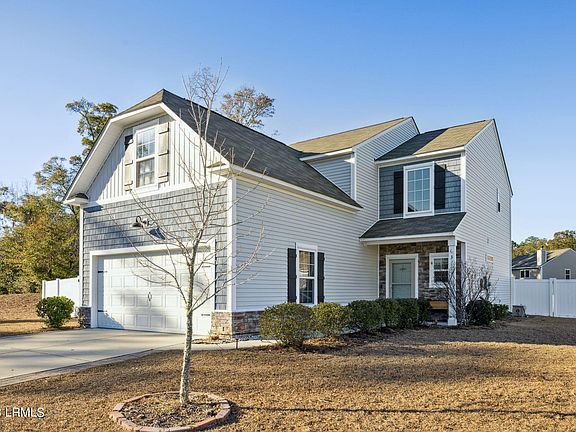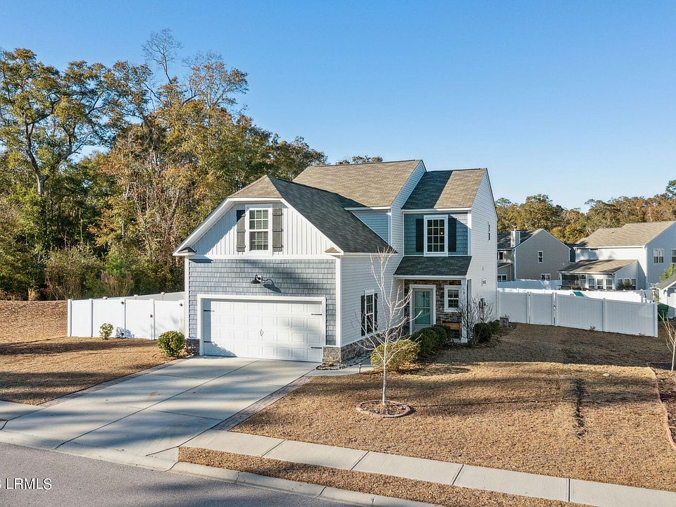 Charming Lowcountry 4 Bedroom, 3 Bath home w/2 car Garage in Southern Oaks. Built in 2018 by Village Park, this 2136 sq. ft. home is situated on a .31-acre private lot. The backyard is very large with a vinyl privacy fence, fire pit and patio. This Beaufort model has the upgraded top tier exterior w/ stone & shakes. Attractive new hardwood floors w/ laminate tops are throughout the house. There are so many features, including a large walk-in closet, master bath w/ soaking tub and separate shower, 9 foot ceilings, 2nd floor Laundry Room, gourmet Kitchen w/stone counters and island and stainless appliances & , floored attic for storage and fireplace in Great Room opening to the patio and very large backyard.