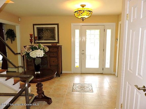 Beautiful, open and airy home. Stunning enlarged kitchen w/Cherry Custom Cabinetry featuring lighted cabinets, drawers for pots and pans, pop up shelf and more. Quartz counters.Large center island. Wine Refrigerator. Garbage disposal. Large Dinette. Replaced windows are all Anderson and Pella. Most rooms freshly painted. Gas Fireplace in FR. Family room open to living room. Tiled foyer, DR, kitchen and dinette. HW through remainder of home.Dining room open to Kitchen.Spacious Master Suite w/WIC. New main bathroom. Master bath and powder room updated.Full finished basement w/full bath. Built in sofas and wall unit w/wet bar. Office and storage area. Recessed lights throughout. Large Laundry room. Oversized deck w/Hot Tub. Fenced yard. 1 year old Timberline roof. Natural Gas for cooktop only.