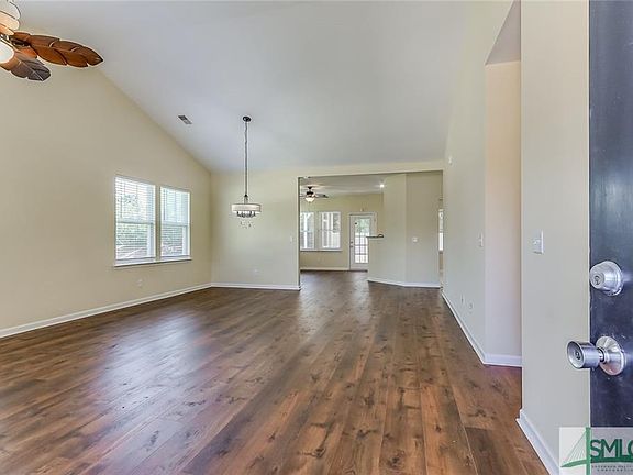 Totally updated one story townhome with full exterior maintenance included! Enter into the large living and dining areas, open also to the kitchen. The area off the kitchen could also be used for dining or a family room! Two bedrooms and two baths, split floor plan. There is also an office with custom built desk and shelving. New vinyl plank flooring throughout the home. Also, new blinds, appliances (even a convection oven!) new granite counter tops, lighting, and plumbing fixtures. You can actually enjoy the outdoors with a GENEROUS sized screened porch! Two car garage is finished with epoxy floors and shelving! HOA covers all exterior maintenance, mowing, pressure washing, and roof replacement when the time comes. Come see this lovely home in a quiet neighborhood, yet so close to all the conveniences Pooler and Savannah have to offer! Check out the 360 Virtual Tour Link!