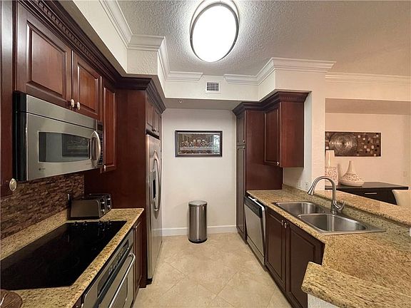 Make your dream home a reality in this immaculate 2/2 condo located in Renaissance Commons. This turnkey unit boasts a split floor plan for maximum privacy, neutral flooring, crown molding, laundry room with washer & dryer, impact windows and a covered balcony with a fountain view. The dream kitchen features stainless steel appliances, granite countertops and a snack bar. Two primary suites each with a large walk-in closet and bathrooms with dual sinks. Inc. 2 parking spots in the covered parking garage close to the unit. Renaissance Commons is located close to bars, restaurants, shops, major highways and just minutes to the beach. The community has first class amenities which include a clubhouse, fitness center, large gathering room, and resort style pool. All furnitures is available for sale. The unit is vacant. Please give 24 hour notice for showings.