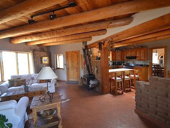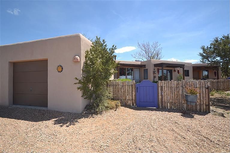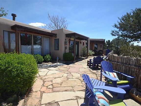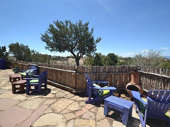 Passive Solar home on 1.77 acres with exceptional views, private cul de sac locations, close to the Agora Shopping Center and 15 minutes to Santa Fe. Enjoy low utility bills with brick floors, trombe walls, and wood stove. Viga ceiling throughout. Split 3 bedroom and 2 full bath floor plan. All wall are America Clay which is an eco friendly product. Kitchen includes stainless steel appliances and Viking Range. Highlight is the outdoor entertaining areas for your year round enjoyment.