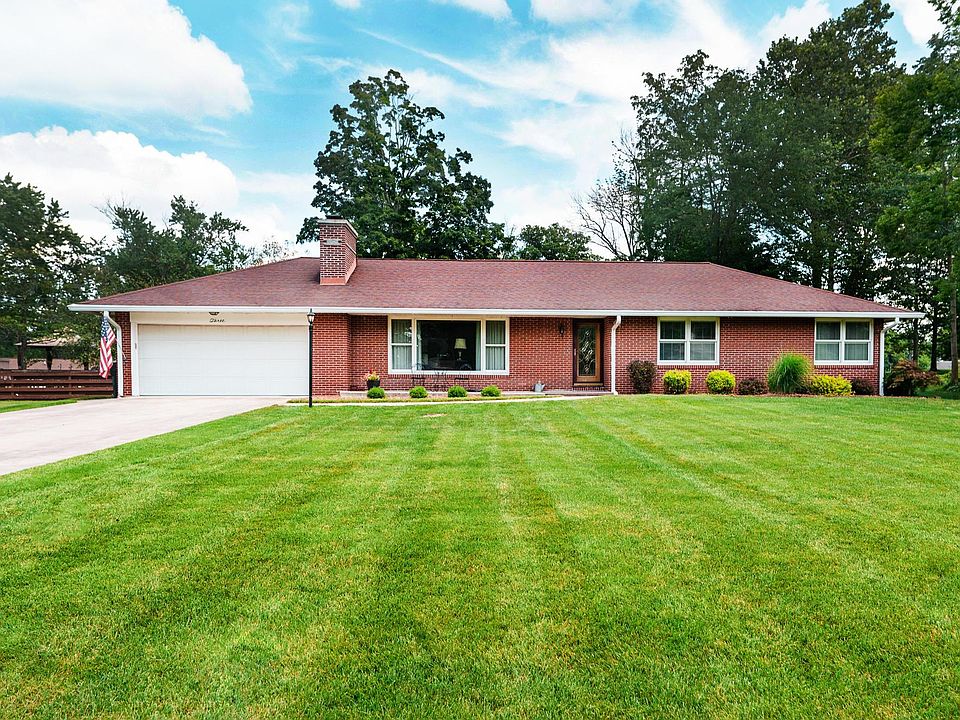 More than meets the eye! This 3-4 bedroom, 3 bath home in Brewer Heights boasts single-level living + modern updates, like the multiple skylights throughout for plenty of natural light. This home features a combination living/dining space with brick fireplace, a bright, updated kitchen with granite countertops, + a large great room with focal stone fireplace + cathedral ceilings. On the other side of the home is a full bath with skylight, a laundry room, + 3 bedrooms, one with walk-in closet + adjoining bath. The partially finished basement offers a potential 4th bedroom, a utility room, + a large rec room with bar area. On about 3/4 acre, curb appeal is lovely with 2 car garage, landscaping, large back patio, + plenty of yard space.