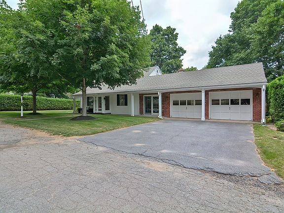 There is so much to appreciate in this lovely cape home, maintained and loved by the same family for over 50 years. Situated on a quiet little dead end road but close to major routes for an easy commute. Great privacy and gorgeous outdoor space. With a 2 car attached garage and a separate 3rd garage bay, there is plenty of space for parking and storage. Inside you will find an updated kitchen with lots of cabinet space, a large living/dining area, 3 bedrooms, an office/4th bedroom, and a bathroom on each floor. Between the house and garage, you'll find a huge breezeway/sunroom that is currently set up as a second living room but could also be a great home gym, game room, etc. There is so much opportunity to build equity here with some minor updates, including refinishing the hardwoods under the carpets on the first floor. This home also offers single level living, if needed, with the main bedroom, bathroom, and laundry all on the first floor