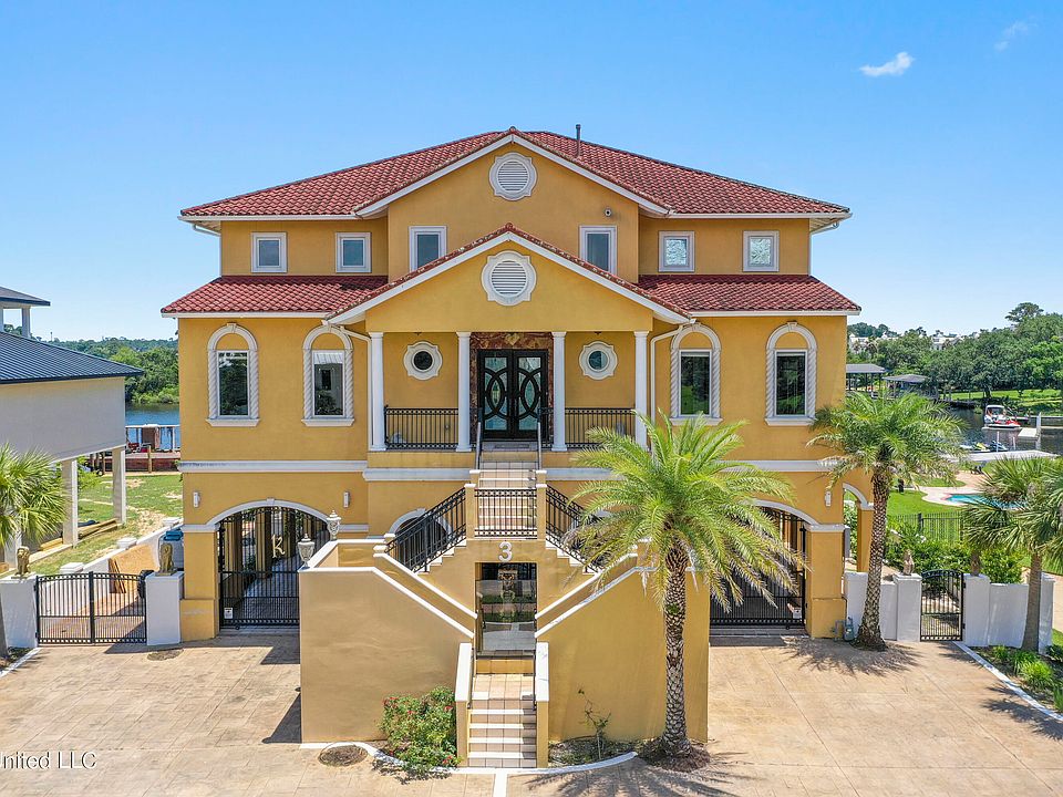 Waterfront home Located in Bayou View area. Home features 7,000 sq.ft. Heated and cooled area. The home has three levels with an elevator. The living room has 22' ceilings with a panoramic view overlooking the Bayou Bernard. Dining room has water view opening up to the outdoor Kitchen.