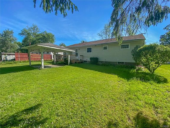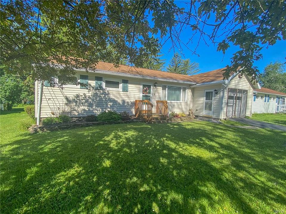 This Town of Owasco Ranch is located in a quite dead end street right off of the Owasco River. The property offers a 25' deeded right of way to the river which sits right next to the marina and would allow you to walk to one of their boat slips. This 3 bedroom home has a large eat-in kitchen, AC, nice sized back yard with pavilion, and an extra bonus room off of the kitchen for additional living space.