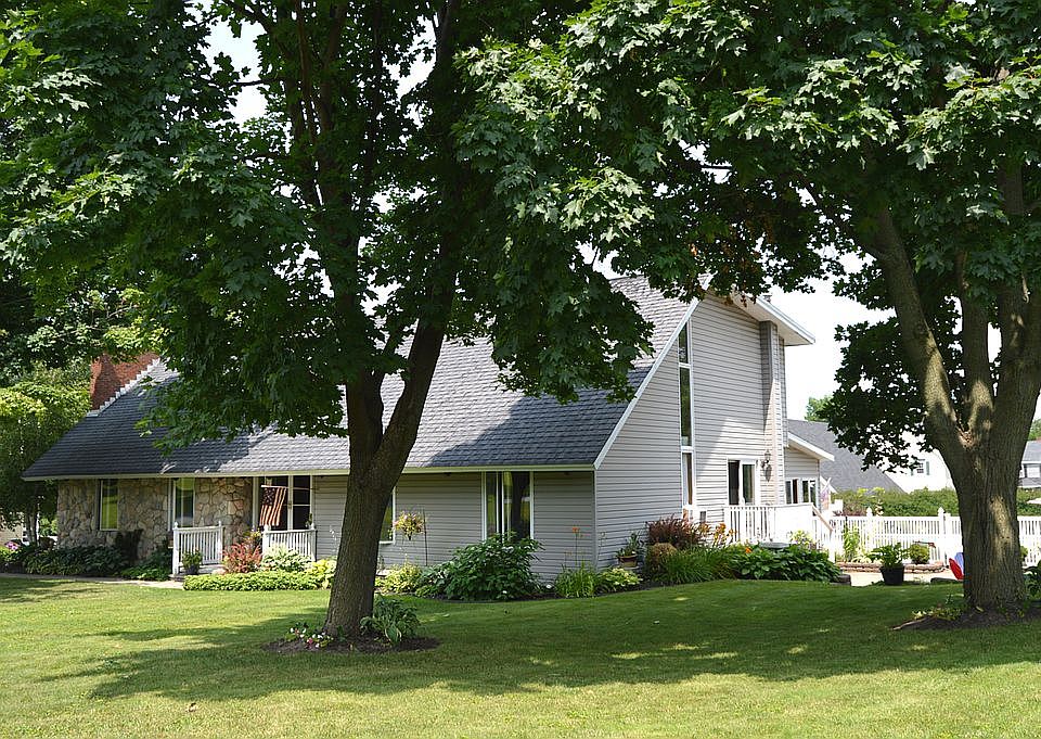 EXCEPTIONAL HOME that needs to be seen to be appreciated! This contemporary style four bedroom home is loaded with style, design and quality features both inside and out! The double door entrance welcomes you into the large foyer and is open to the expansive dining room with slate floors and vaulted ceilings. The living room features a floor to ceiling stone fireplace at the far end. Vaulted ceilings with exposed beams are in this room also. Large spacious kitchen is great for all to gather with plenty of cabinetry and a pantry for additional storage. New stainless steel appliances will convey with the property. Eating area from the kitchen is perfect for casual meals and the custom built-in computer/study area is ideal for everyone to use. Sun room offers brand new flooring and newly re-finished moldings to keep this room bright and is easily accessible to the expansive pool area! Brand new pool liner which is heavy duty is also an upgrade so the new owner is good to go! All four large bedrooms are upstairs. The master is a welcome retreat with its own bath and a huge walk-in closet! This area is anyone's dream with built-in cupboards, organizers, hang up space and also features the laundry area, ultra-convenient! Finished basement offers a full bath with a sauna, family room with an electric fireplace, a separate gym/fitness room and a bar. AND, let's not forget to mention the 2 year old roof on the front of the home! New plywood, insulation and ridge vents for maximum heating and cooling efficiency year round! The back roof is only ten years young! New for the summer of 2017, air conditioning was recently installed in the home! So many updates and special features throughout the home and property, you will want to take a look for yourself!! The owner has taken meticulous care of this home and anyone would be proud to be the next owner!