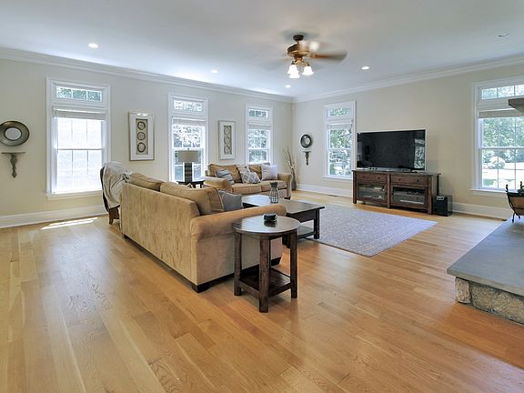 Magnificent updated spacious and flowing Colonial located on one of Easton's most coveted cul-de-sacs. This gorgeous home has beautiful millwork and transom glass doorways. A formal living room, dining room, great room, large eat- in kitchen, vast sun room, and sliding doors that open to the deck and patio make this main level perfect for living & entertaining! The grand foyer and curved staircase leads up to a large master suite with a sitting room and fireplace. There are an additional 4 bedrooms and the 5th bedroom can also be used as an enormous rec room. The huge finished lower level provides a perfect space for a playroom, media room, excercise room and more. This beautifully landscaped setting has a very private backyard with deck, patio, and pond. Perfect for fishing and skating! Located close to transportation, shopping, restaurants and amenities.