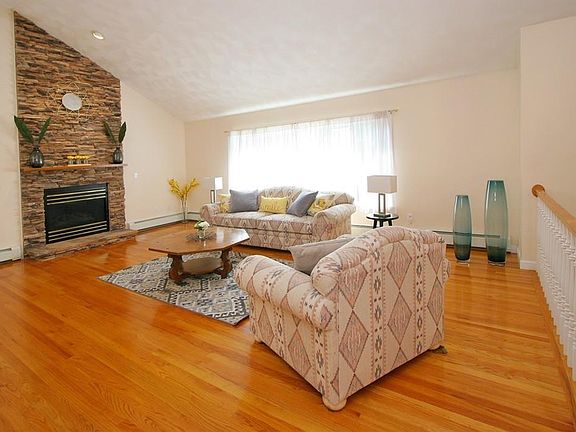 Welcome to Rochelle Drive! A cul de sac location steps from the Common, Lake Quannapowitt and Downtown Wakefield and it's fine restaurants. This young (1997) spacious 54 ft. Split Entry home offers an open and airy first floor plan w vaulted ceiling and generous sized rooms. Two fireplaces, hardwood floors, 3 full bathrooms and a 2 -Car heated garage. Sliders to a deck from the diningroom.5 Zone Gas heat. Central A/C to keep you cool in the Summer heat. Are you a commuter? Walk to commuter rail station to Boston, or hop on the bus to Orange line. Also convenient to all major highways and Market Street.. Leave the car in your driveway and walk or jog the 5K route around the Lake. Move in condition. View by appointment.