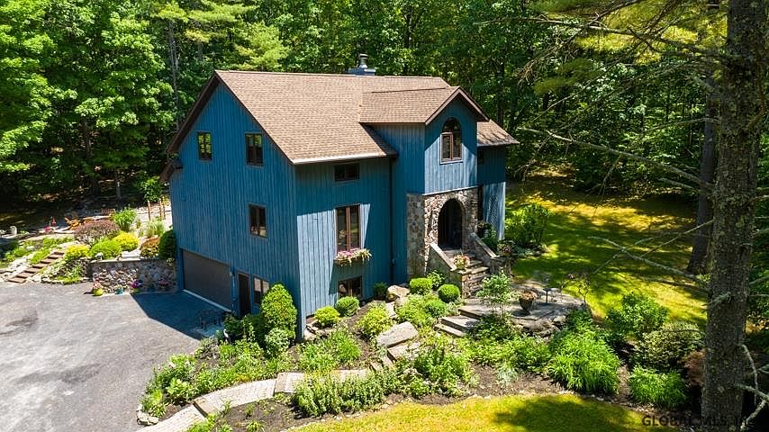 Welcome to your custom built Catskill Mountain retreat on 5 wooded acres. Enjoy privacy AND access to I-87. Imagine cooking in a fully equipped country kitchen with peninsula seating for 6. Entertain in the dining room and double great room with gas fireplace. The first floor features a pub room/4th bedroom, full bath, and a craft room/office with separate entrance. The master bed and bath, 2 additional bedrooms and guest bath are on the 3rd floor. Hardwood, tile baths, granite, stainless steel and 2 additional electric fireplaces complete the high end finishes. Outdoors, swim in the heated Ag pool, stargaze in the hot tub and linger at the piped in gas fire pit. Stroll the paths and manicured grounds. The electrified barn/studio/extra garage and 2 sheds provide posibilities and storage.