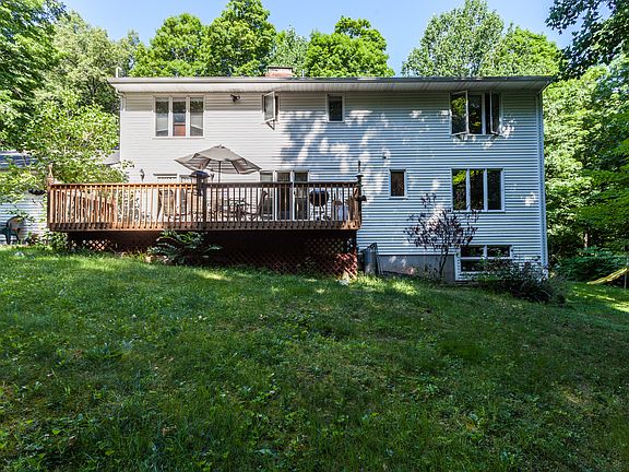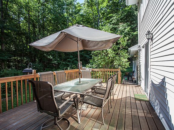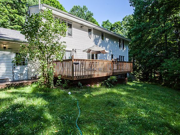 5 bedroom colonial with new kitchen and 4 new bathrooms! Kitchen features white shaker cabinets with granite countertops. stainless appliances and new ceramic tile flooring. Large living room with fireplace and slider to spacious deck which overlooks a wooded rear. Bedroom suite on 1st floor is fully remodeled. First floor also has laundry and 1/2 bath. Second floor features 4 additional bedrooms and 2 full baths both remodeled!