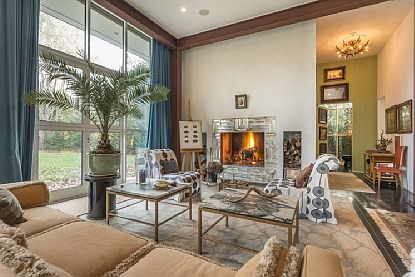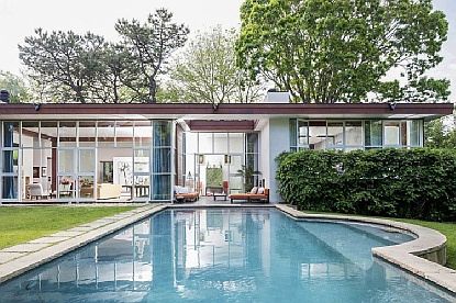 In 2009, four masters of style and performance '- a legendary fashion editor at Vogue, her artist husband as well as architect Michael Haverland and builder Ben Krupinski -' created an unforgettable residence where Hamptons history meets the 21st century. An elegant wrought-iron gate introduces the long drive leading past mature specimen trees up to the dramatic entryway with its 10-foot glass and steel front door. Indoors, the loft-like great room features exposed structural steel beams, 13-foot floor-to-ceiling window-walls and a woodburning fireplace framed with mirror molding of Dorothy Draper design. Polished ebony concrete floors carry throughout the house's open floor plan that includes a kitchen with a huge picture window, limestone countertops and first-quality appliances. The captivating master suite has hand-painted Chinese silk murals, antique mirror closet doors, a gas fireplace and a bath suite with a steam spa and a sunken overscaled tub-shower leading to an intimate wisteria-covered balcony. On the opposite end of the home are two guest bedrooms, each with French doors opening to private terraces. The lower level has a laundry area, an extra-large cedar closet, full bath and a large bonus room-all with 10-foot ceilings. Outdoors, the generous lawn is punctuated with a Baroque-styled pool and an utterly romantic 1880 ivy-covered cottage from the original Reverend Henry Rose estate. The perimeter of the .75-acre property is lined with 25-foot walls of mature plantings, ensuring perfect privacy for this very special sanctuary.