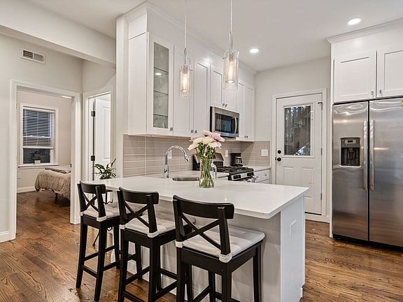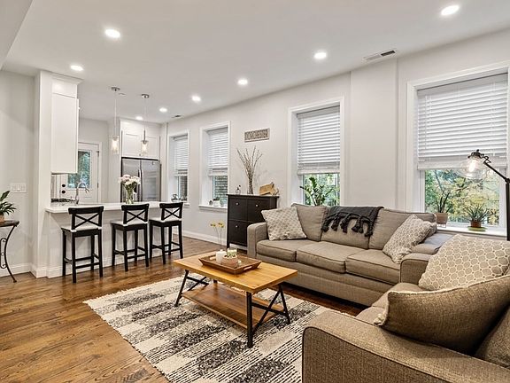 Stunning three bedroom, two bathroom residence located on a tree-lined street at the base of highly desirable ASHMONT HILL! This condominium was totally renovated in 2018 with beautiful modern finishes, open floor plan, amazing natural sunlight, and hardwood floors throughout. The open concept kitchen was designed to entertain with a gorgeous breakfast bar, GE appliances, and modern pendant lights. The master suite features elegant curved bay windows, large walk-in closet, and a luxurious spa bathroom with tile shower and bluetooth speaker. The second and third bedroom are generously sized with ample closet space and share a beautiful guest bath. Other highlights include a small exclusive deck area, smart programmable thermostat, central air, intercom system, in-unit washer and dryer, and additional deeded storage space. This lovely brownstone is in close proximity (0.5 mi) from Ashmont MBTA and all new local restaurants and shops!