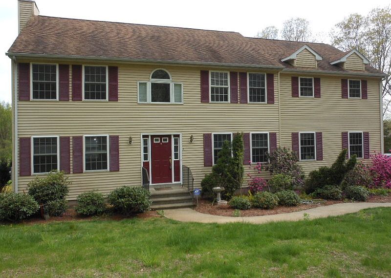 Spacious 5 BR, 2.5 bath Colonial set on level, corner lot on offers spacious eat-in kitchen with center island, gas range and slider to deck, family room with fireplace, formal living room & dining room, master suite with full bath & walk-in closet, spacious bedrooms, walk-out basement with slider, 2 car garage and wonderful yard! Convenient location to schools, highways, EB & Navy base.