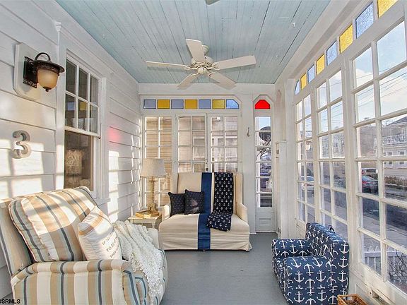 This immaculate 4 bedroom, 3 bath Southside home seamlessly blends classic architectural elements with modern upgrades. A large enclosed porch with stained glass transom windows provides a welcoming first impression. Newly renovated, the home features original hardwood floors throughout, a living room with a built-in wood burning fireplace and a large dining room with new custom built-ins topped with Carrera marble tops. The remodeled kitchen also boasts Carrera kitchen counter tops and a center island as well as custom cabinets and new appliances; a full bathroom is just off the kitchen. The 2nd floor has four spacious bedrooms, a large bathroom and a new deck with access from the two front bedrooms. The lower level includes a laundry room, a 3rd full bath and plenty of room for storage or additional living/sleeping space. There is a great fenced yard with a new stamped concrete patio provides perfect for entertaining. Other exterior highlights include a new concrete driveway for 2 car parking and an outside shower. Some additional upgrades in the home are a new hot water heater, new central air, upgraded gas high efficiency furnace and new electrical service. Just 1.5 blocks to the beach and boardwalk of Ventnor, this home will make a wonderful summer retreat or year-round residence!