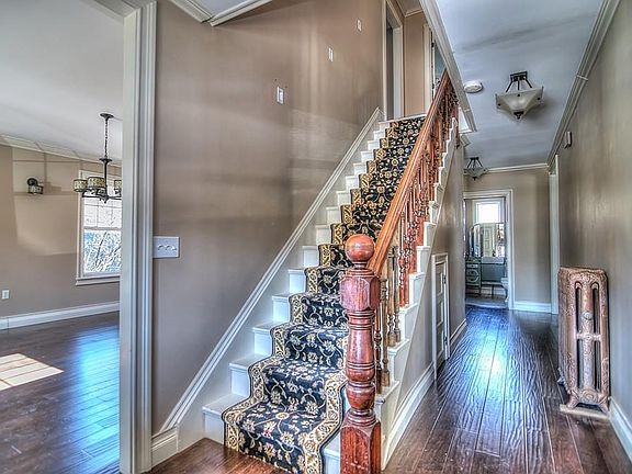 GORGEOUS Historical hipped roof Colonial with INCREDIBLE upgrades - fully restored in 2012. Chef's kitchen with large sub-zero fridge, Viking double wall ovens, Thermador 6 burner stove, wine chiller, and huge island! BEAUTIFUL custom touches throughout includes cabinetry in the HUGE formal dining room, radiant heated tile flooring in the kitchen and bathrooms, AMAZING master bath with marble double-headed rain shower, custom concrete sink and waterfall faucet! NEW roof in 2012 on main home and the garage, private backyard with hot tub, and a brand new washer and dryer. FOUR spacious bedrooms plus an office/den, and the master bedroom features his/her walk-in closets. This stately home has historic CHARM with surprising ELEGANCE inside! Additional features include 2-car detached garage/barn, unfinished walk-up attic with 8ft ceilings, and WATER RECLAMATION SYSTEM in the walkout basement! Priced under market value due to the need for a new well, cash or rehab loan only.