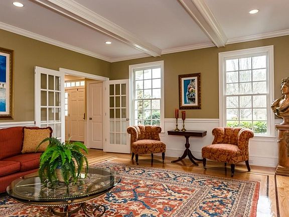 Saddle Club Estates.The circular drive and spacious ¾ acre corner lot create the perfect setting.The generous foyer leads to an impressive staircase, the formal living room with coffered ceiling, gas fireplace and elegant dining room. The mahogany library is enhanced by raised panels, built-in cabinets & a diagonal oak floor. Features of the amazing kitchen are skylights, oversized windows, granite counters, top of the line appliances, open flow to the family room, a nearby bar area & direct entry to the patio for seasonal dining. The mud area & half bath are conveniently located near the 3 car garage which has a unique epoxy floor. The master suite is superb with a fireplace, fitted walk-in closet, a sitting room/office & marble bath. Three en-suite bedrooms with baths plus a 5th bedroom (play area/guest suite). Lower level has an open area for a media room, a built in bar area, full bath. Pre-wired home theater or exercise room & more complete this level.