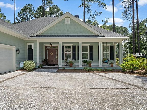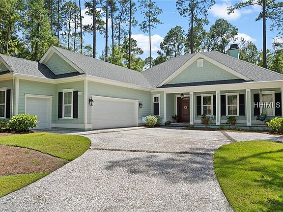 Enjoy the best of both worlds in this opulent 55+ Sun City Hilton Head waterfront community. Pay low HOA fees for the amenities of Sun City PLUS amenities of Riverbend. Riverbend has beautiful oak trees and a dock on the banks of Okatie River. This wonderful 2016 custom home sits on a cul-de-sac with a lagoon view & features 3 bedrooms, 2 full baths, half bath & a 2 car garage with an additional golf cart garage! It boasts a stunning Carolina room with Hunter Douglas shades, custom built-ins, tray ceilings, and a gas fireplace. Enjoy your Bosch stainless steel appliances and touch faucet while cooking in your custom kitchen and much more!