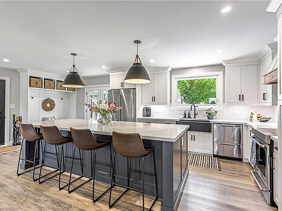 Step inside this stunning 4-level side split in the heart of Burford, where timeless design meets high-end craftsmanship. With over 2,500 sqft. of customized living space, this home stands apart with quality finishes & smart updates. It’s the perfect fit for multi-generational families or anyone seeking space & flexibility without compromising on style. The main level impresses from the moment you walk in, a chef’s kitchen designed with luxury in mind, featuring an oversized quartz island, premium cabinetry with pot drawers, crown moulding, & high end appliances. The living room adds warmth with custom built-in cabinets & cozy fireplace, while the bright sunroom offers a peaceful view of the backyard oasis all year long. Upstairs, you’ll find 3 spacious bedrooms, each with custom closet organizers, & a spa-like 3pc bath finished with a glass shower, built-in bench, and storage. The lower level is ideal for extended family or guests, offering a private living area with a kitchenette, 4pc bath, and direct walk-out to the yard. The finished basement provides another separate entrance, 2pc bath, fruit cellar, and versatile rooms perfect for a home gym, or office. Outside, your backyard retreat awaits, a heated inground pool with a new liner & safety cover (2023), & new heater (2025), a hot tub tucked beneath a pergola, & a tranquil koi pond that adds a touch of serenity. Make use of the 20x20 detached shop with hydro & wood stove, with an additional 12x20 lean-to, ideal for projects, or hobbies. Meticulously maintained and modern upgrades throughout from new windows and doors (2021/2023), new AC (2024), & fresh landscaping (2025), every detail has been thoughtfully chosen for quality and comfort. Centrally located between Brantford and Woodstock, with quick access to both Highway 403 & 401, this home offers the best of small-town living with city convenience close by. 3 Saint Catharine St is more than a house — it’s the place where every generation can feel at home.
