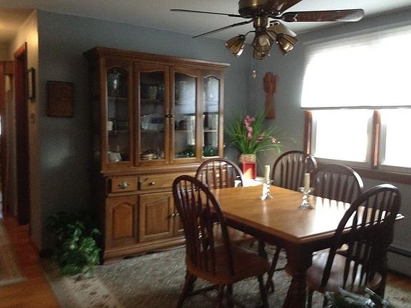 Don't miss out on this well cared for 4 bedroom cape with a newer (2 years) fenced yard conveniently located near the center of town. Has all the comforts you want including a wood burning fireplace for cozy winter nights in the living room, dining room, replacement windows that let in lots of light and include new accordion blinds, new high end Bosch heating system (6 months), newer roof (2011) central air and gutter guards (all APO). The master is conveniently located on the first floor with another bedroom that is perfect as a nursery or office, two more spacious bedrooms with lots of closet space and a full bath are on the 2nd floor. The basement has been fully waterproofed and includes state of the art sump pump & dehumidifier all ready to be finished for extra living space. Step out the back door onto your deck and into a spacious fenced yard with storage shed and electric run to yard all ready for a pool. No showings until first Open House on Sunday, January 6 from 1:00-3:00