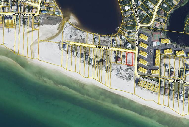 Very nice lot one tier back from gulf.Very short walk to public beach access and should have possible views of gulf and Eastern Lake.