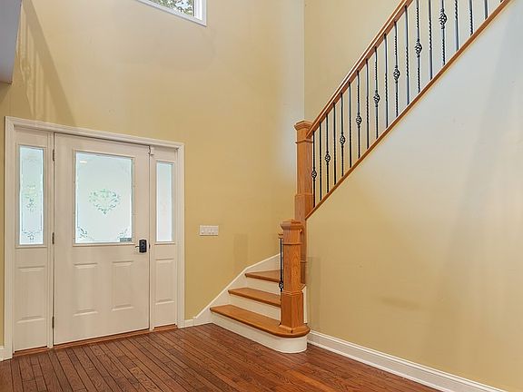 Lovely home with room to ROAM! The grand two story foyer welcomes you into this open floor plan featuring hardwood floors which are carried throughout most of the main level. HUGE living room makes for perfect entertaining with double sided fireplace, wet bar, and wine fridge. Separate dining room perfect for formal gatherings. The chef inspired custom kitchen is updated with granite countertops, all stainless steel appliances including 6 burner stove, range hood, center island with sink, dishwasher and high top seating. The family room has oversized windows to take in the beautiful scenery complete with built in shelving and ceramic tiled fireplace. Master bedroom has a slider to a second level deck which makes for peaceful mornings and tranquil evenings. Finished basement has a 4th bedroom, full bath and storage galore! All of this plus a huge driveway and a 3 car attached garage. Situated on a private cul-de-sac but close to everything! WELCOME HOME! Being SOLD AS-IS.