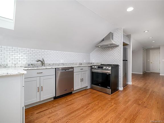 Completely renovated from top to bottom this 3 bedroom, 1 full bath is going to make you fall in love! Walking through the front door a mudroom with a coat closet greets you. Next awaits a stylish kitchen with gray soft close cabinets, granite counter tops and stainless steel appliances. Cozy eating nook with natural light pouring in through skylights and a spacious sun-soaked living room. 3 large bedrooms with ample closets space, 1 being perfect for an office or bedroom (whatever suits your needs) and a new bathroom complete this picture perfect rental! Washer/dryer in unit and hardwood floors throughout. Last but certainly not least, relax on your deck with a good book or dine al fresco! Gas heat and parking for 2 cars in the driveway along with plenty of street parking makes this the cream of the crop! 1 mile to both the Cos Cob train station and I-95, convenient to restaurants, shops and just minutes from all that Greenwich Avenue has to offer! Dont let this great home pass you by.