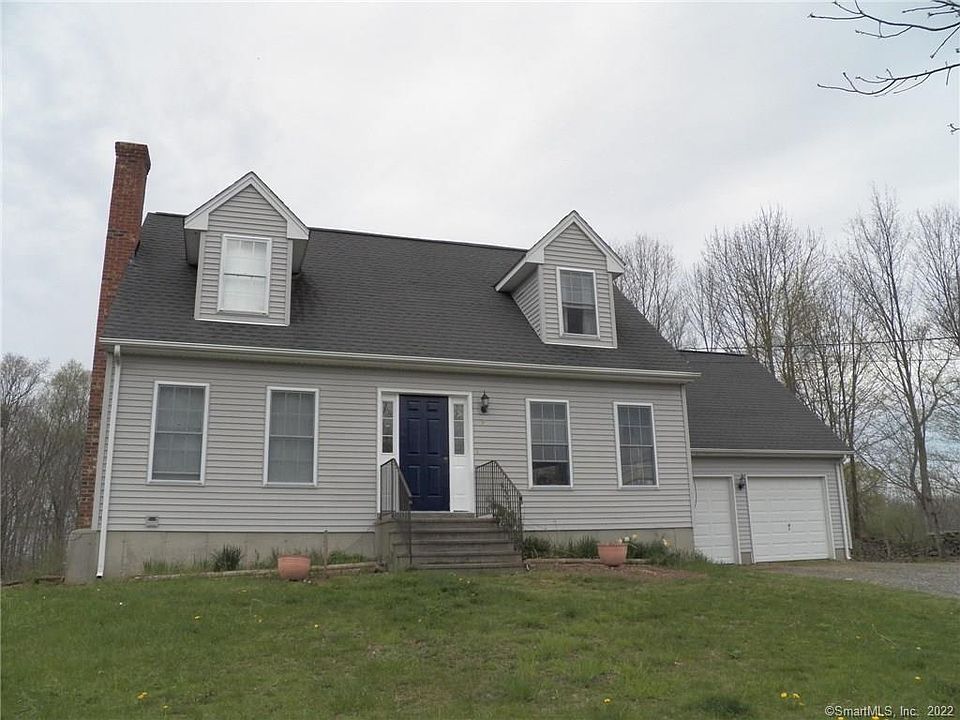 Great country cape with open floor plan. Living room has gleaming hardwood flooring and is open to the large kitchen. Slider leads to deck for outside relaxing and your private back yard. !st floor bedroom and full bath for convenience. There are 2 additional large bedrooms and a full bath upstairs. The attached 2 car garage is very convenient. The bushes and flowers are just starting to bloom and showcase a beautiful New England spring garden. This house has easy access to Route 244 to route 198 and Route 44. Live in the country and feel like you are on vacation!