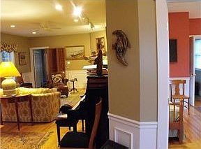 A high quality custom cape with an elegant, comfortable floor plan. Large kitchen, dining and living room area, a spacious ground floor master suite, light filled sunroom with heat stove, and designated office/den. Pleasant neighborhood quite near to town
