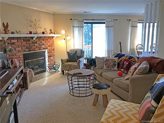 Light, bright, upper ranch style unit. 2 Bedroom, 1 bath condo with fireplace in living room. Open floor plan with sliders off living room to new deck. Bamboo flooring in entry/hallway leads to well maintained living/dining and kitchen area or follow hallway to two bedrooms and bath. Large master bedroom with walk in closet, 2nd bedroom with double closet. Washer and dryer in unit. Central air. 1 car attached garage as well as a reserved parking spot (#3) directly across from garage. Large storage room located directly across from interior garage access. Located just steps to Merrit 7 train, while close to the Merrit 7 Parkway and Route 7 Connector in a coveted Silvermine location.