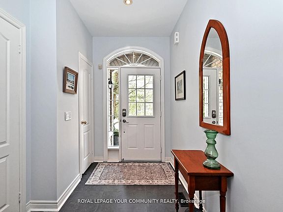 This elegant three-bedroom executive townhome, located in The Classics of Aurora Woods, sits on a picturesque, mature lot backing onto a serene ravine a true wooded sanctuary in the heart of Aurora. Nestled on a private cul-de-sac with ample guest parking, it offers both privacy and convenience. Inside, hardwood floors run through the main and upper levels, complemented by a newer carpet runner on the wooden staircase. Soaring 9-foot ceilings with a dramatic cathedral peak enhance the spacious, airy feel of the main floor.The kitchen, beautifully remodelled in 2017, is both stylish and functional, featuring a large corner pantry, deep pot drawers, hidden utensil storage, and generous counter space. The flexible main floor layout allows you to customize your living space whether you prefer a main-floor office or den, a breakfast area, or an expanded family room as currently arranged. The dining room comfortably seats eight and has space for a sideboard, perfect for hosting. The inviting family room centers around a gas fireplace, flanked by windows and sliding doors that frame stunning views of the backyard deck, landscaped gardens, and ravine.Upstairs, the spacious primary suite easily fits a king-sized bed, side tables, and multiple dressers. Two bright windows overlook the manicured yard and ravine, while a walk-in closet, an additional closet, and a five-piece ensuite add to its comfort and practicality. The second and third bedrooms offer ample closet space and hardwood floors, served by a nearby main bathroom. The finished basement is an expansive, versatile space currently accommodating a large sectional, pool table, electric fireplace, and more. Whether you envision a home gym, a media lounge, or an entertainment hub, this level offers endless possibilities. Municipal address is 3 Senator Court.